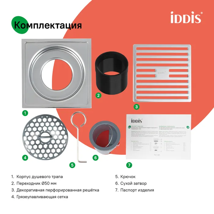 • Фильтр в комплекте позволяет легко и быстро очистить трап от крупных загрязнений. Покрытие устойчиво к коррозии, появлению царапин, сколов и потускнению. На протяжении многих лет он будет выглядеть как новый. Гарантия на душевые трапы IDDIS® – 10 лет.