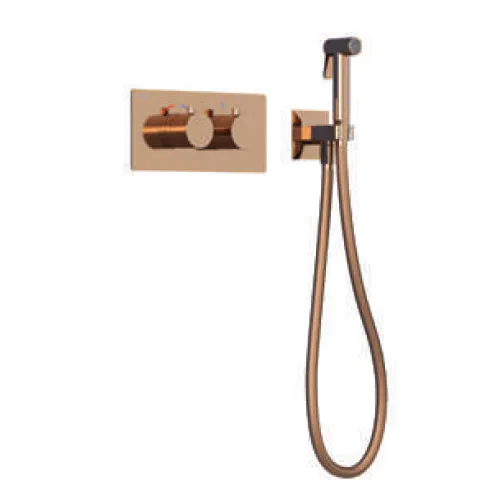 Встраиваемый термостатический смеситель с гигиеническим душем Lio Teo розовое золото TESKA арт-TS6209