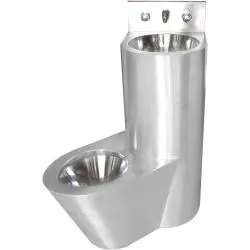 Антивандальный туалет с умывальником выполнен из нержавеющей стали AISI 304 и не имеет острых углов. Предназначен для мест где требуется повышенное внимание к прочности и качеству оборудованию санузлов. Смеситель в комплект не входит, но можно заказать его отдельно. Туалет расположен слева от умывальника