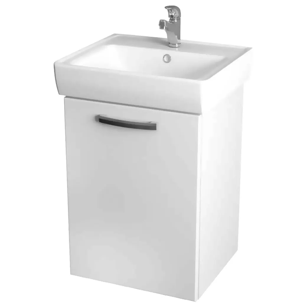 - Эстетичный вид: Белый глянец тумбы добавляет современности и визуально расширяет пространство, что особенно важно для небольших ванных комнат.