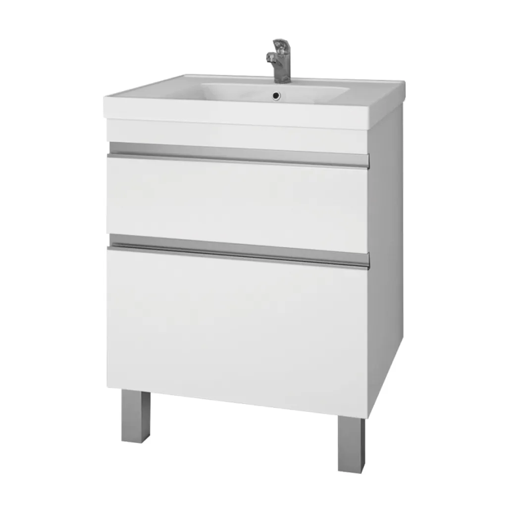 Тумба GRACE PLUS, 60 см, подвесная/напольная, 2 ящика, с опорами, белый глянец