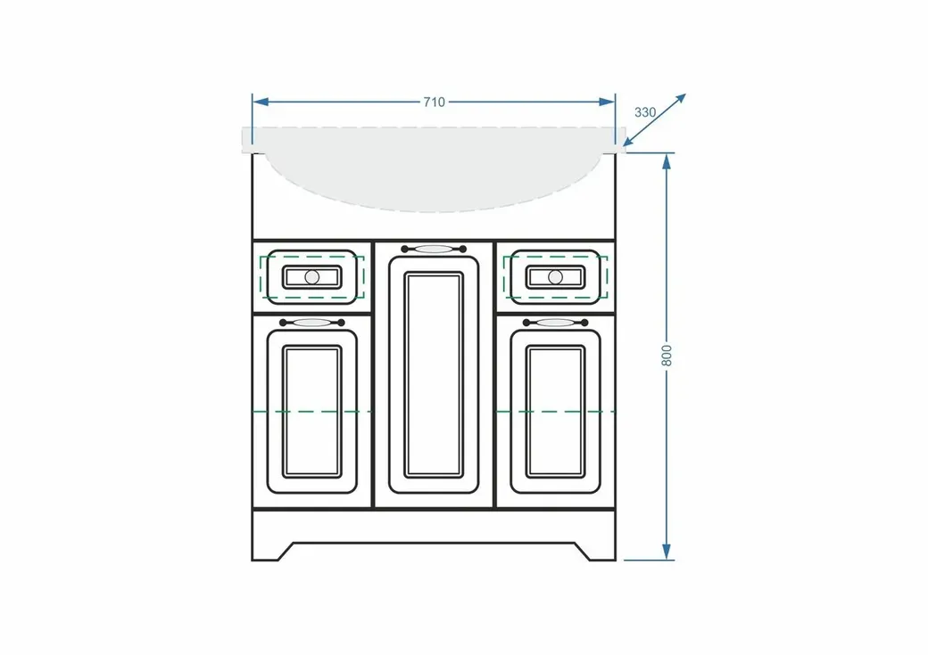 - Размеры: ширина 71 см, глубина 33 см, высота 80 см