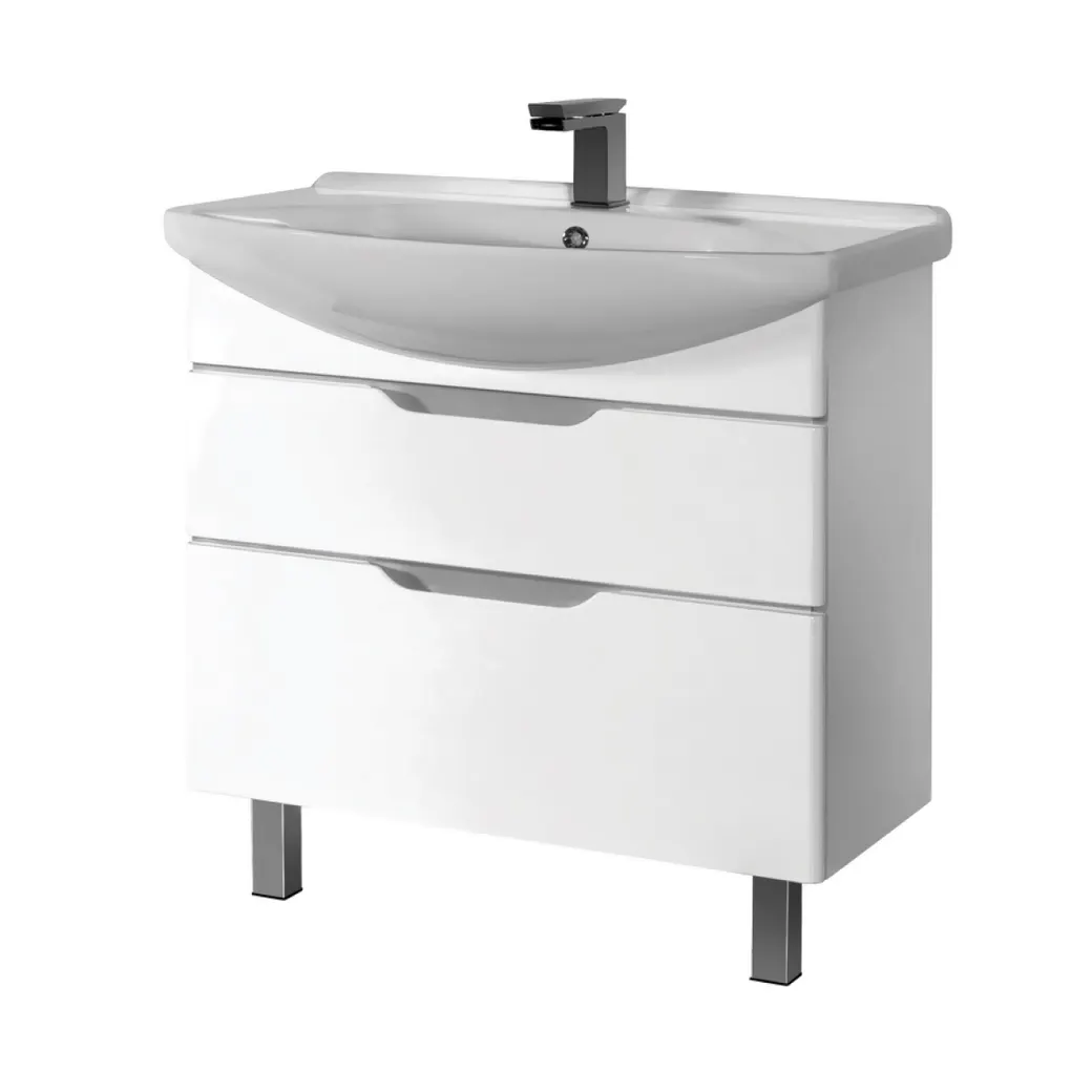 Тумба LAGUNA PLUS, 105 см, подвесная/напольная, 2 ящика, с опорами, белый глянец