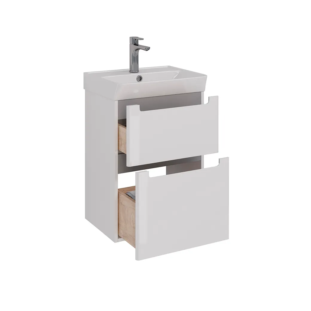 Тумба Lemark BUNO 50 см под 1 раковину, подвесная/напольная, 2 ящика, цвет планки: Серый, цвет корпу арт-LM04B50T
