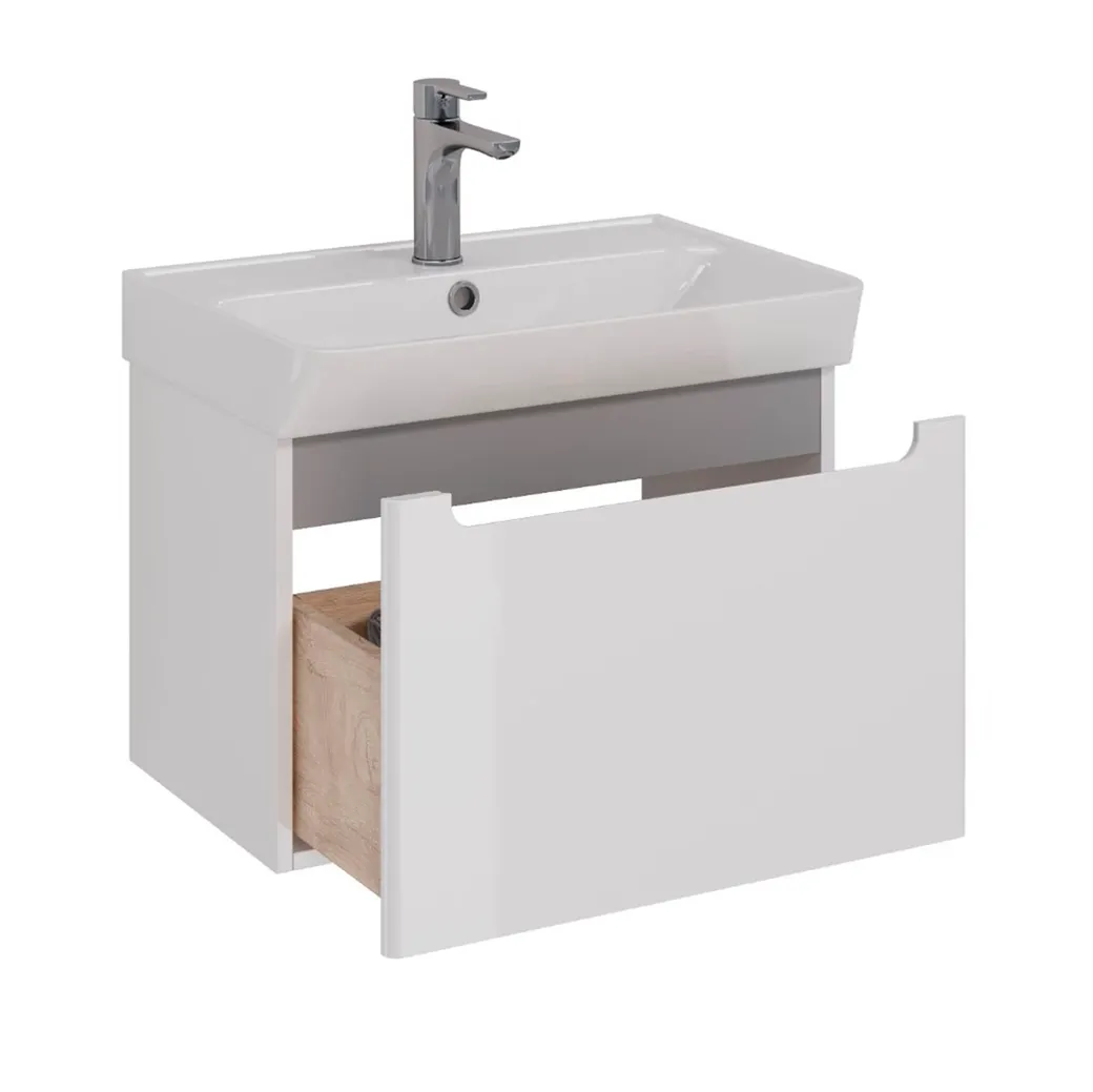 Тумба Lemark BUNO MINI, 60 см под 1 раковину, подвесная, 1 ящик, цвет планки: Серый, цвет корпуса, ф арт-LM05BM60T