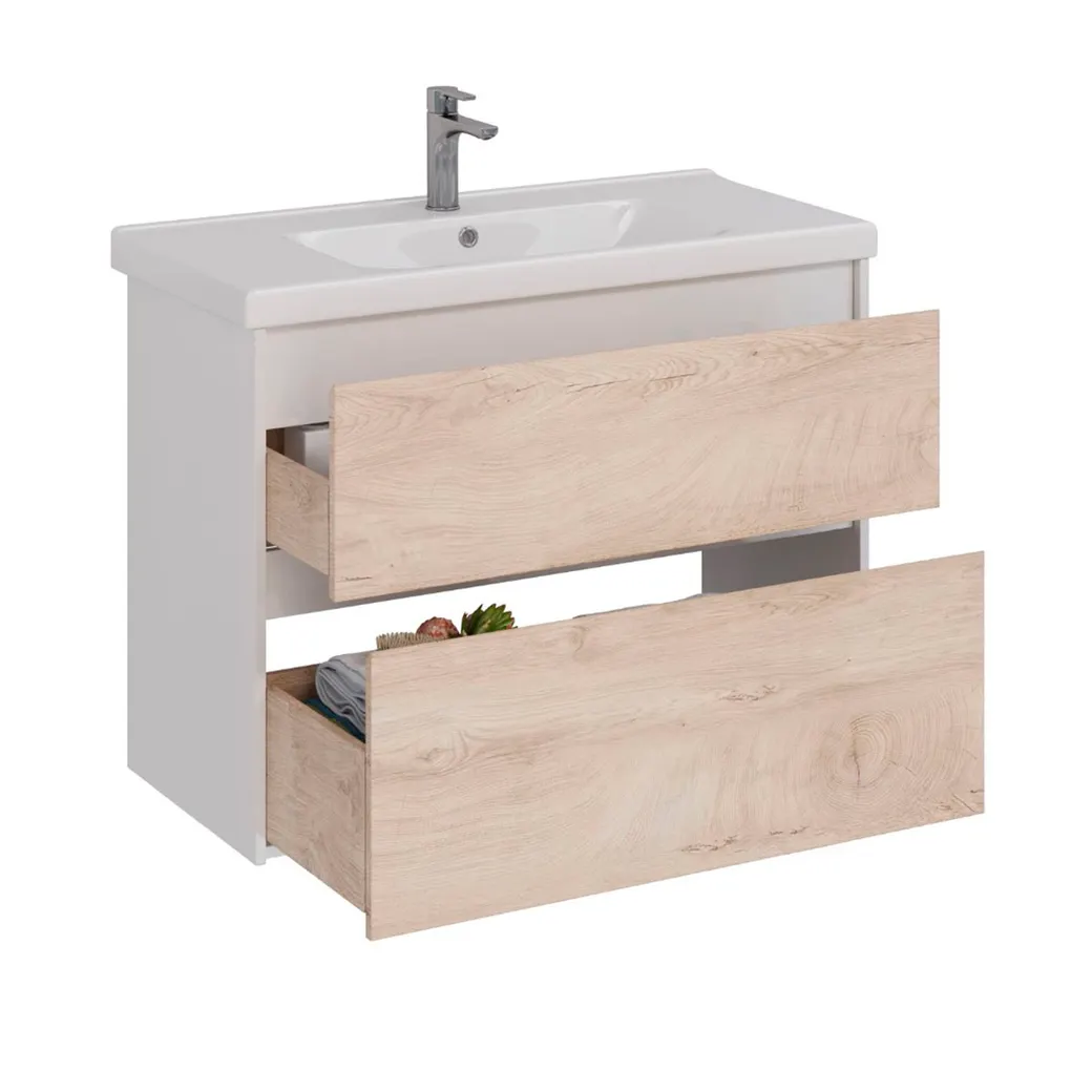 Тумба Lemark COMBI 100 см под 1 раковину, подвесная/напольная, 2 ящика, цвет фасада: Дуб кантри, цве LM03C100T-dub — фото 1, Тумбы под раковину