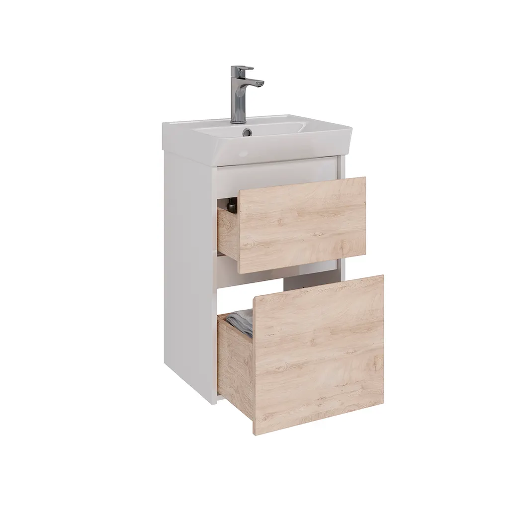 Тумба Lemark COMBI 45см под 1 раковину, подвесная/напольная, 2 ящика, цвет фасада: Дуб кантри, цвет LM03C45T-dub — фото 5, Тумбы под раковину