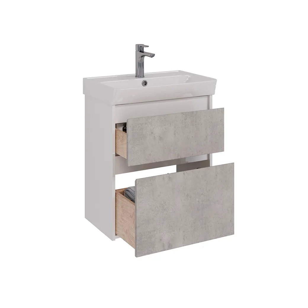 Тумба Lemark COMBI 60 см под 1 раковину, подвесная/напольная, 2 ящика, цвет фасада: Бетон, цвет корп арт-LM03C60T-Beton
