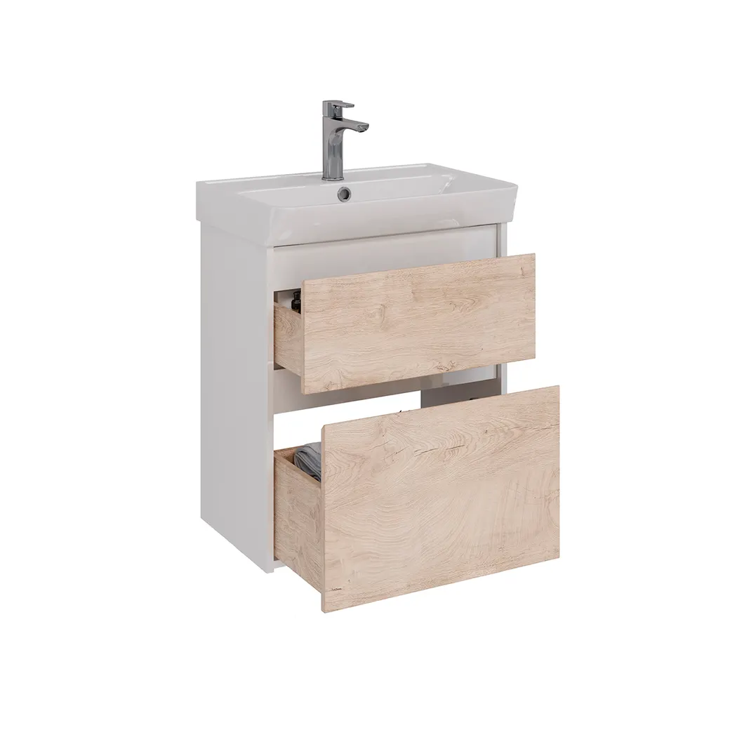 Тумба Lemark COMBI 60 см под 1 раковину, подвесная/напольная, 2 ящика, цвет фасада: Дуб кантри, цвет арт-LM03C60T-dub