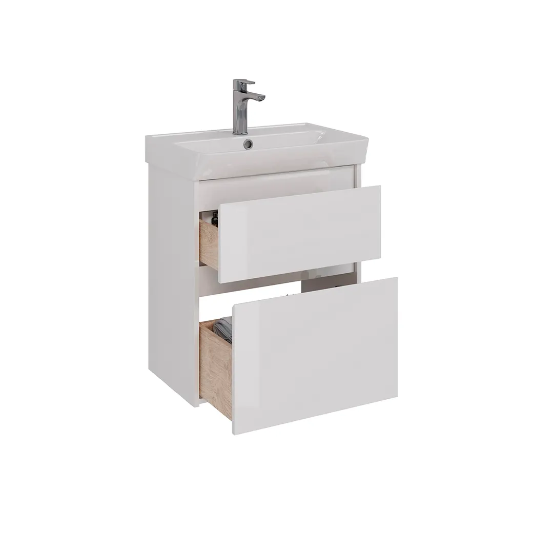 Тумба Lemark COMBI 60 см под 1 раковину, подвесная/напольная, 2 ящика, цвет корпуса, фасада: Белый г арт-LM03C60T