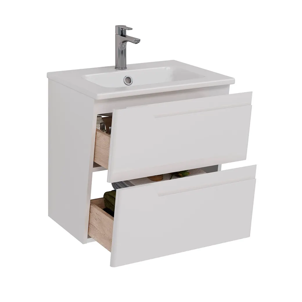 Тумба Lemark MIANO 60 см под 1 раковину, подвесная, 2 ящика, цвет корпуса, фасада: Белый глянец арт-LM06M60T