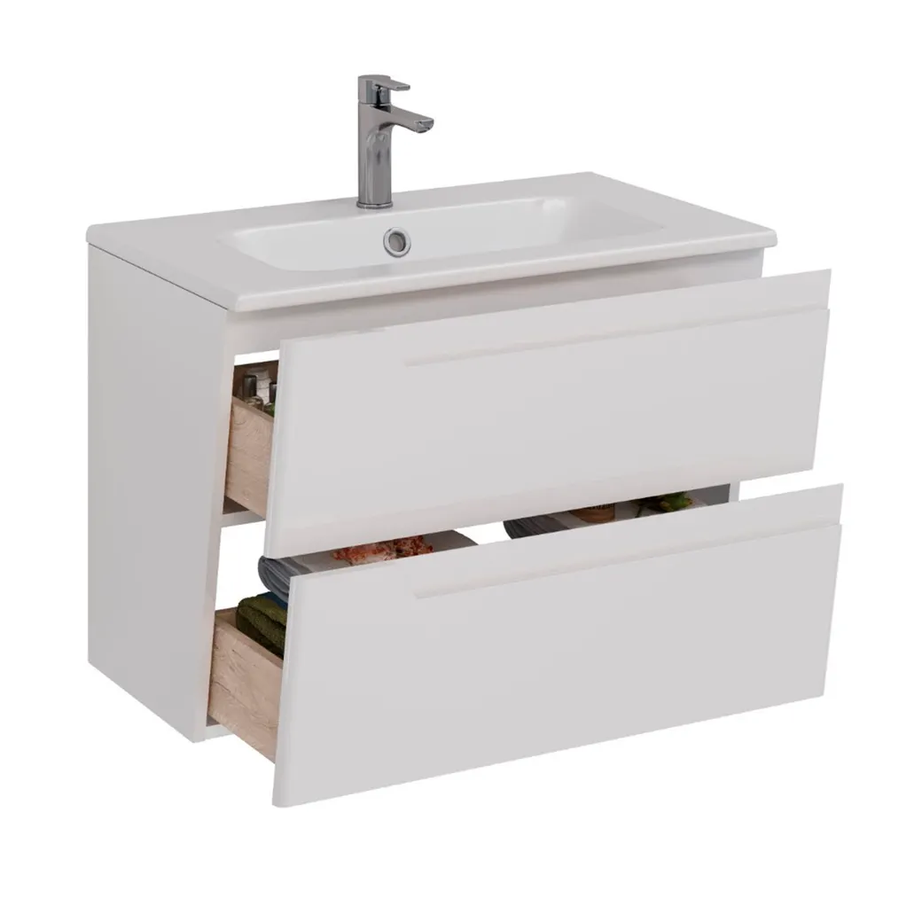 Тумба Lemark MIANO 80 см под 1 раковину, подвесная, 2 ящика, цвет корпуса, фасада: Белый глянец арт-LM06M80T