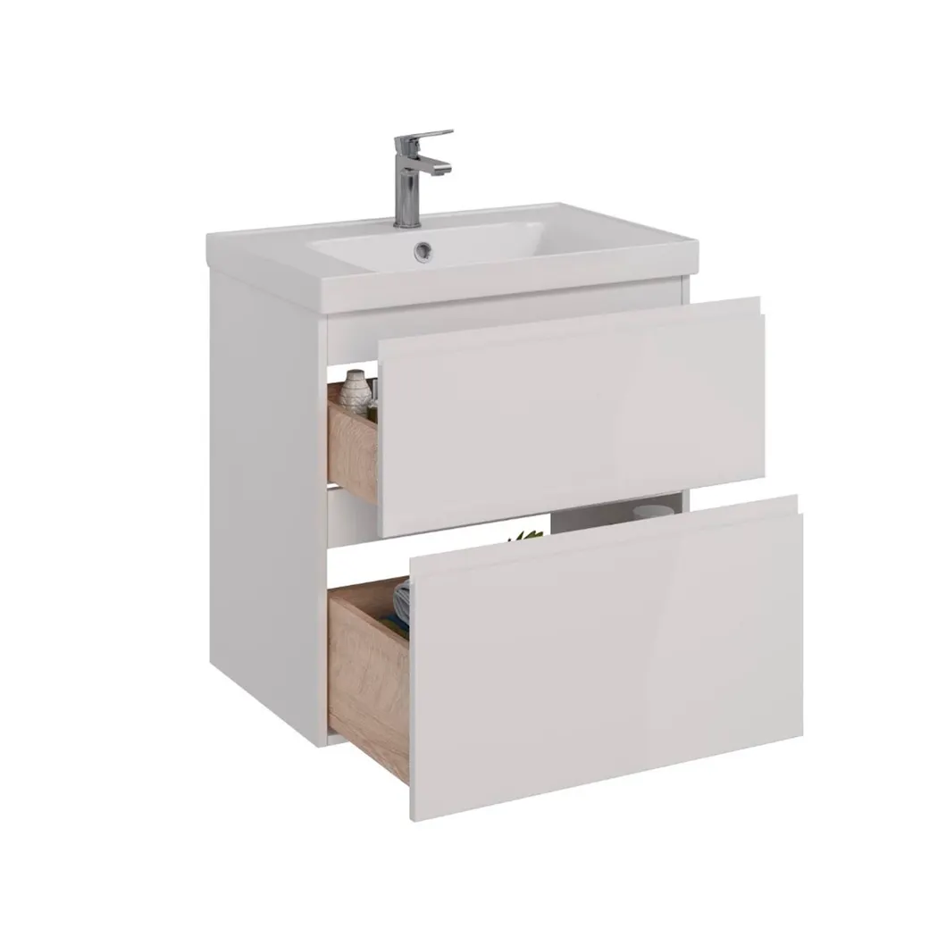 Тумба Lemark VEON 60 см под 1 раковину, подвесная/напольная, 2 ящика, цвет корпуса, фасада: Белый гл LM01V60T