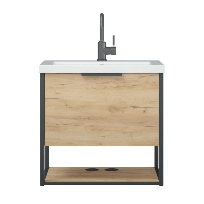 тумба Лофт 60 (Como 60) 1 ящик подвесная дуб крафт зол./черный без умывальника арт-MFR80107OK