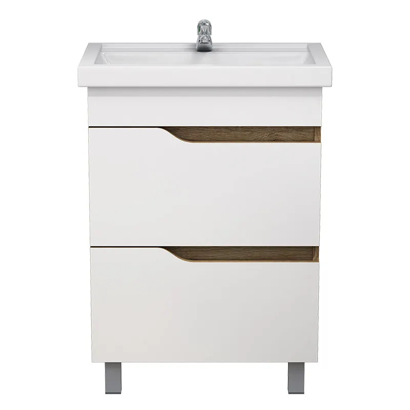 тумба Лотос 60 (Фостер 60) DB2 напольная, дуб светлый/белая без умывальника арт-MFR19687WB