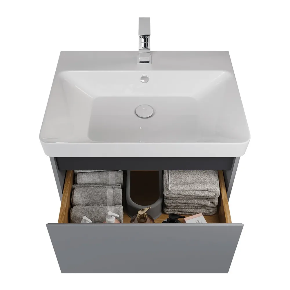 Тумба LUXURY PLUS, 105 см, подвесная/напольная, 2 ящик, серый базальт арт-99.2034