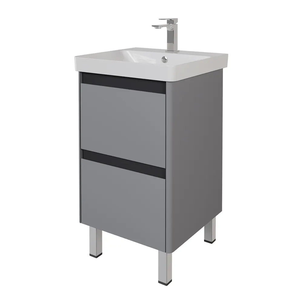 Тумба LUXURY PLUS, 50 см, подвесная/напольная, 2 ящик, серый базальт арт-99.2028