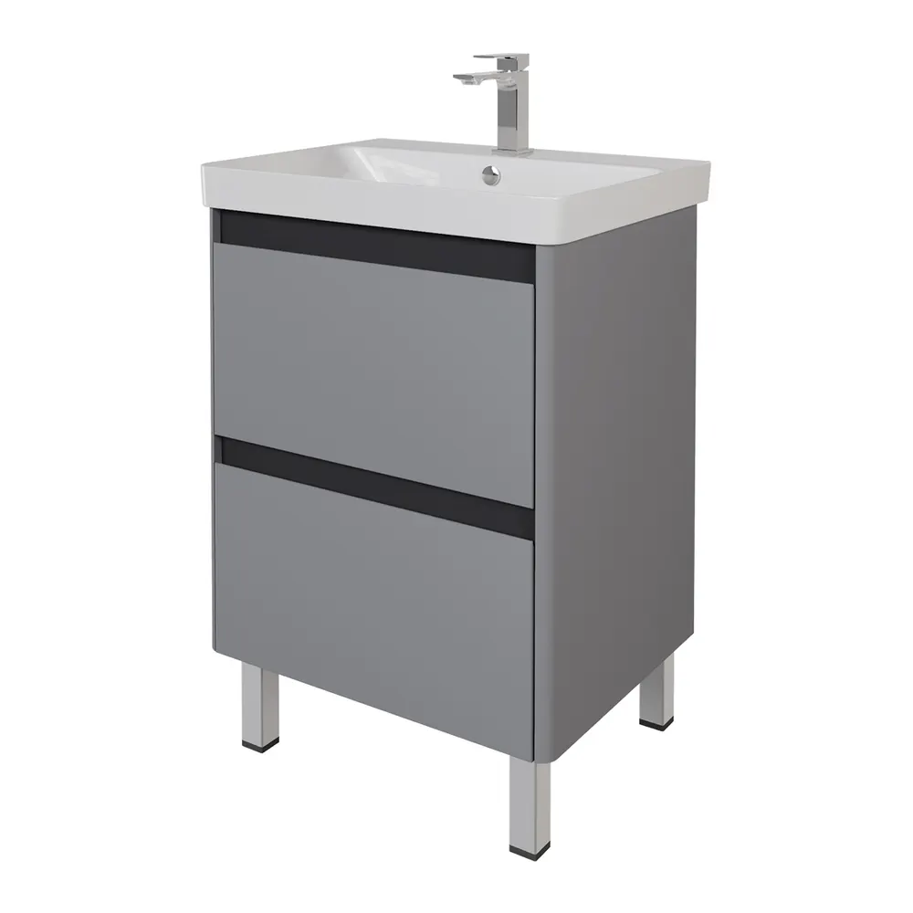 Тумба LUXURY PLUS, 60 см, подвесная/напольная, 2 ящик, серый базальт арт-99.2030