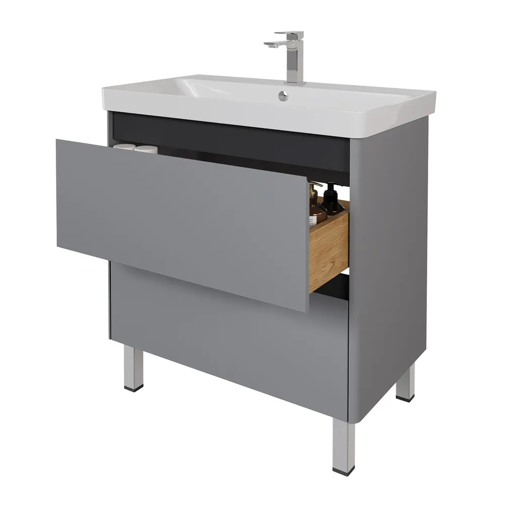 Тумба LUXURY PLUS, 80 см, подвесная/напольная, 2 ящик, серый базальт арт-99.2032
