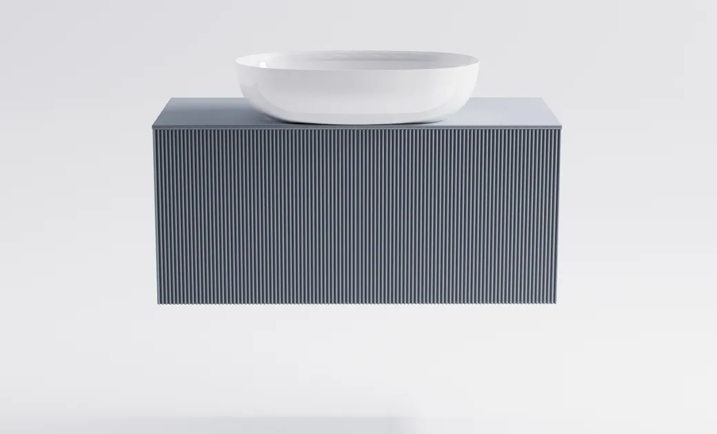 Тумба М-40 Slim 100см 1ящ NCS S 3005-R80B мат./волна, раковина Атрия бел гл, столешница Solid в цвете арт-4631177716096