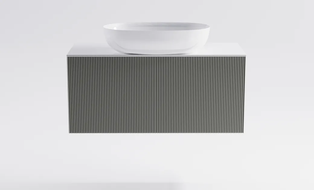 Тумба М-40 Slim 100см 1ящ NCS S 3502-Y мат./волна, раковина Атрия бел гл., столешница Solid бел гл. арт-4631177714665