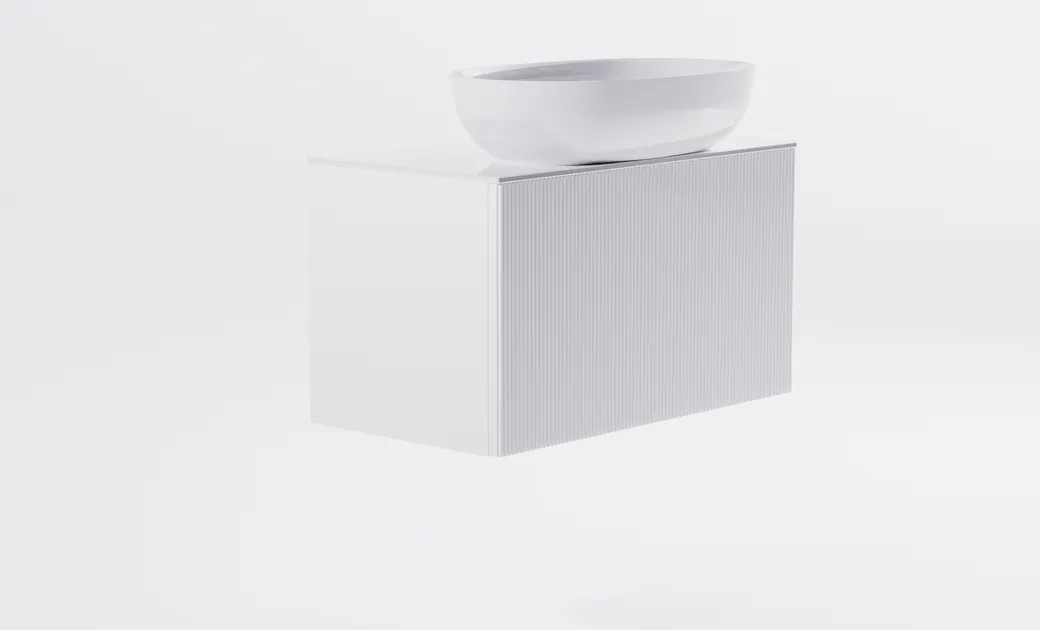 Тумба М-40 Slim 70см 1ящ белый мат./волна, раковина Атрия бел гл., столешница Solid бел гл. арт-4631177714511