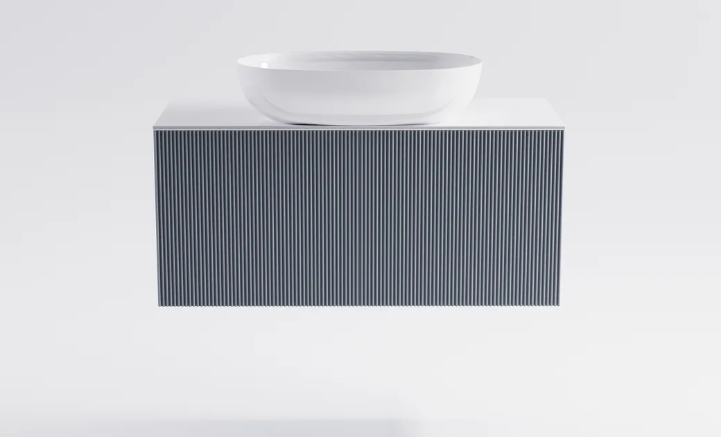 Тумба М-40 Slim 90см 1ящ NCS S 3005-R80B мат./волна, раковина Атрия бел гл., столешница Solid бел гл. арт-4631177714597