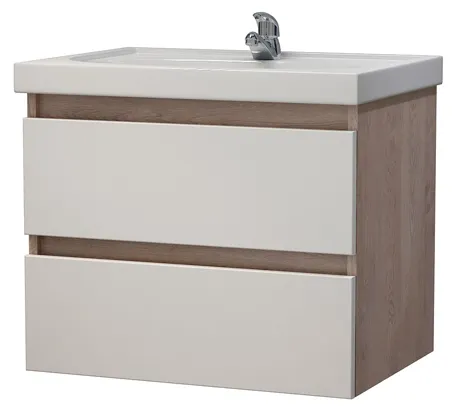 тумба Модерн 60 (Фостер 60) DB2 подвесная, белая/дуб Бардолино без умывальника арт-MFR79612WB