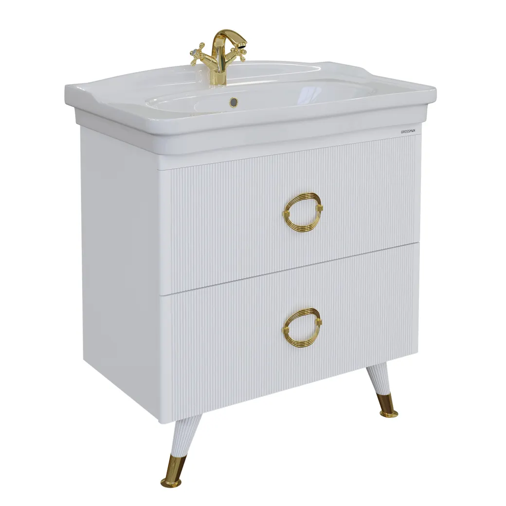 Напольная тумба Атрио-85- элегантность и функциональность в вашей ванной комнате. Напольная тумба Атрио-85 – идеальное решение для тех, кто ценит стиль и удобство. Выполненная в классическом стиле, эта тумба станет изысканным элементом вашей ванной комнаты, добавляя ему элегантности и утонченности. Основные характеристики: Тумба Атрио-85 имеет оптимальные размеры, что позволяет удобно разместить ее в любой ванной комнтате. Корпус и фасады тумбы выполнены из высококачественного МДФ, что обеспечивает долговечность и надежность. Гладкая глянцевая белая краска придаёт поверхности шикарный блеск, а также делает ее легкой в уходе. Фасад с рифлением и золотые ручки придают тумбе особый шарм. Каждый элемент продуман до мелочей, что позволяет ей гармонично вписаться в интерьер, выполненный в разнообразных стилях. Функциональность: Тумба оснащена двумя выдвижными ящиками на направляющих скрытого монтажа. Это значит, что вы получите максимальный комфорт при использовании – ящики открываются плавно и бесшумно, обеспечивая удобный доступ к хранению ваших вещей. Почему стоит выбрать напольную тумбу Атрио-85? Качество и надежность: Мы используем только высококачественные материалы, чтобы обеспечить долговечность и функциональность каждого изделия. Уникальный стиль: Классический дизайн придаст вашей ванне атмосферу уюта и роскоши. Удобное хранение: Благодаря продуманной конструкции, вы сможете легко организовать пространство и эффективно использовать его для хранения. Легкий уход: Гладкая поверхность тумбы позволяет легко очищать ее от загрязнений, что сэкономит ваше время и усилия. Заключение Напольная тумба Атрио-85 – это не просто мебель, а стильное решение, которое подчеркнет вашу индивидуальность и вкус. Приобретая этот товар, вы получаете идеальное сочетание стиля, качества и удобства, что сделает ваш дом более уютным и практичным. Не упустите возможность обновить свой интерьер с помощью нашей тумбы и наслаждайтесь каждым днем в обновленном пространстве!