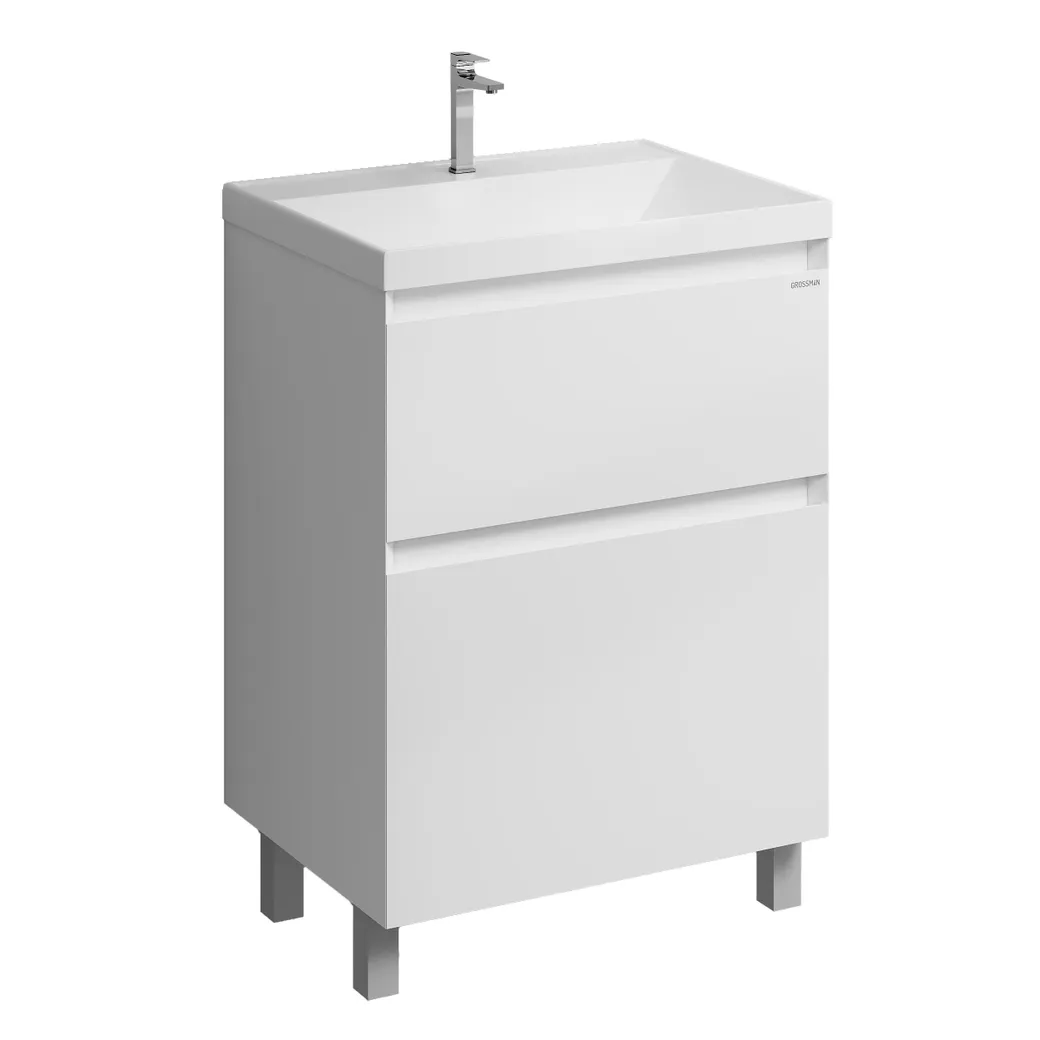 Тумба напольная для ванной «МЕРКАДО-70 см», белая матовая – стильное и функциональное решение для интерьеров в скандинавском и современном стиле. Корпус и фасады выполнены из МДФ в белой матовой краске. Фасады с точным запилом под 45° на торцах, что исключает видимую кромку и позволяет обходиться без ручек, создавая аккуратный и минималистичный дизайн. Два вместительных ящика изготовлены из ЛДСП «дуб Эльвезия» и оснащены направляющими скрытого монтажа с доводчиком для плавного и бесшумного закрывания. Тумба установлена на хромированные ножки высотой 10 см, а для надежного крепления предусмотрены подвесы в комплекте. Модель совместима с умывальником Классика-70. Представлена в трёх размерах (60, 70, 80 см), двух цветах (белый и графит матовый) и двух вариантах исполнения (напольная и подвесная). Отличный выбор для тех, кто ценит современный минимализм, практичность и высокое качество мебели для ванной комнаты.