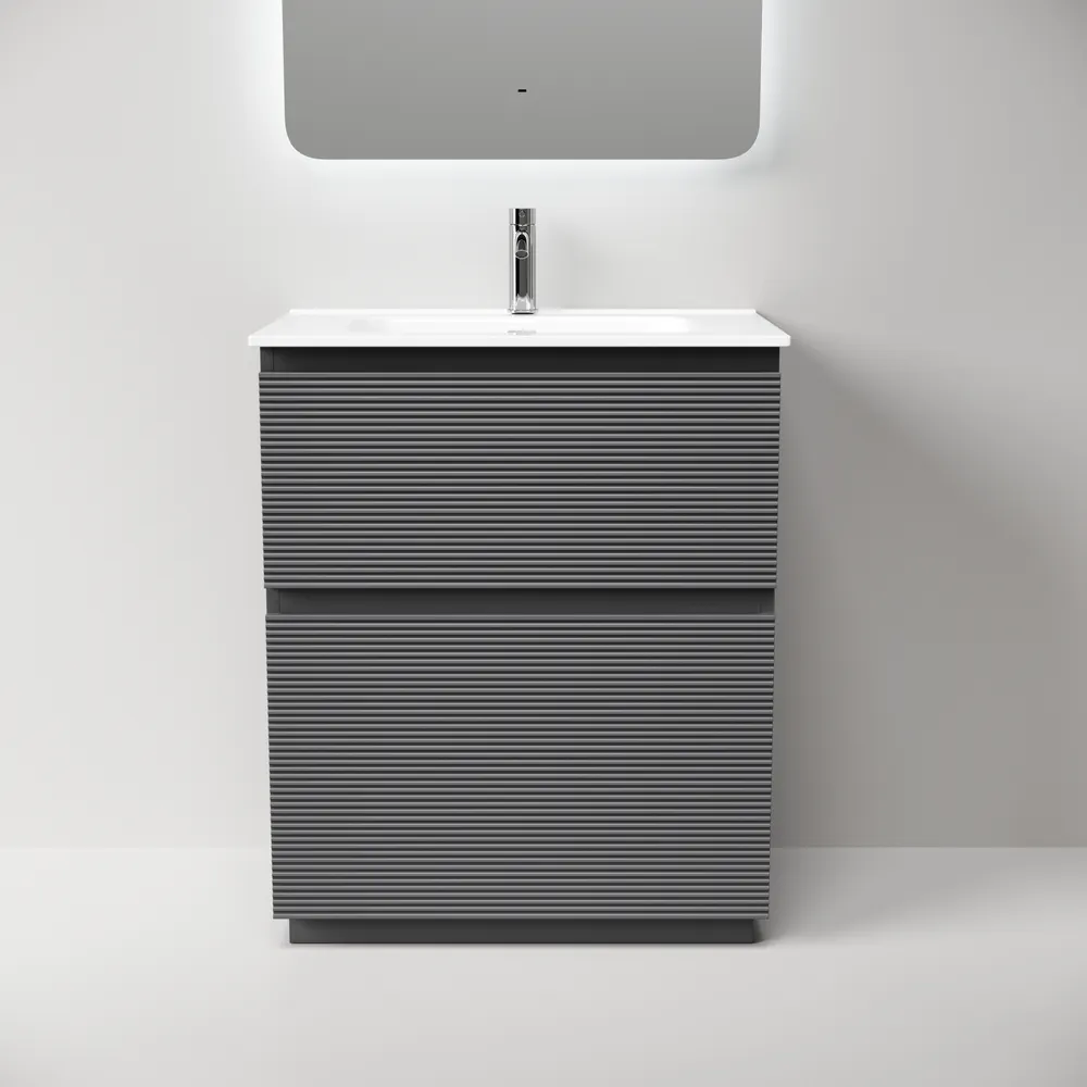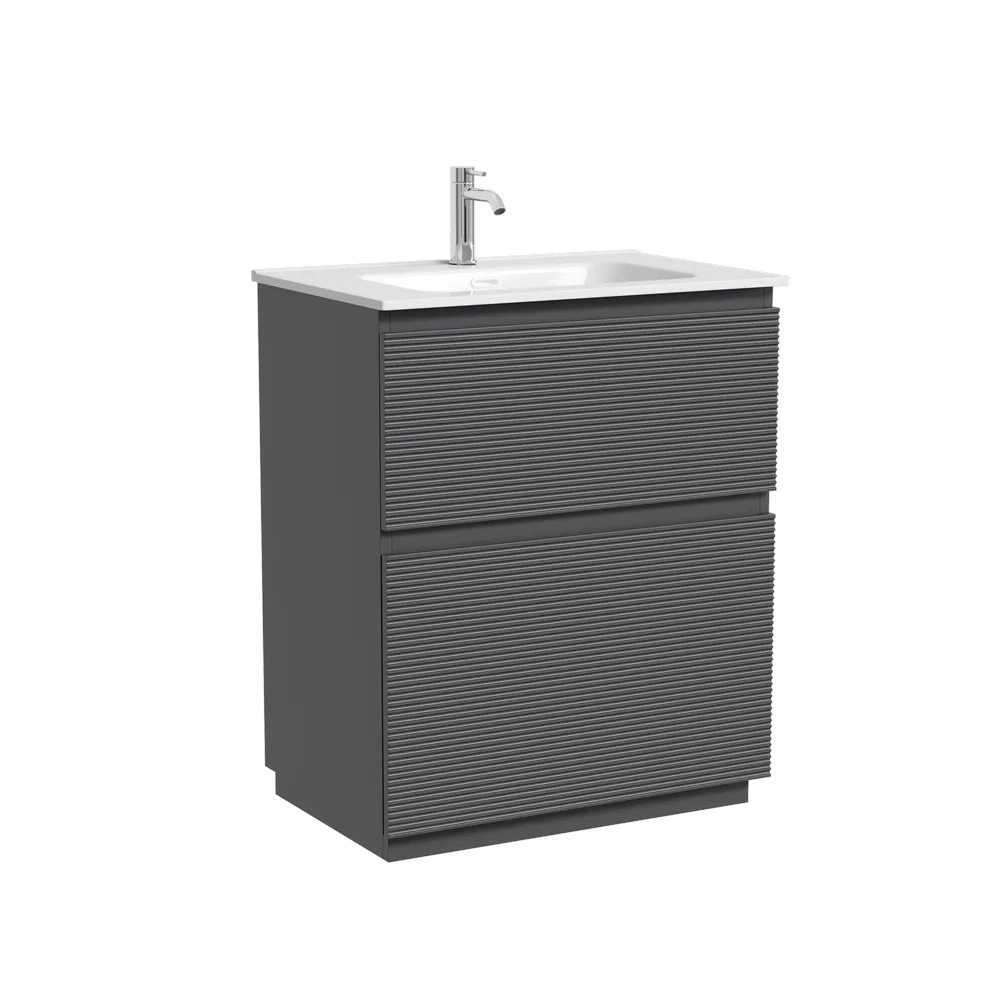 Тумба напольная с рельефным фасадом SANCOS Folk Floor 690х445х850, c двумя ящиками оснащенными доводчиками скрытого монтажа с системой плавного закрывания, цвет Grey soft, арт.FL70FGS