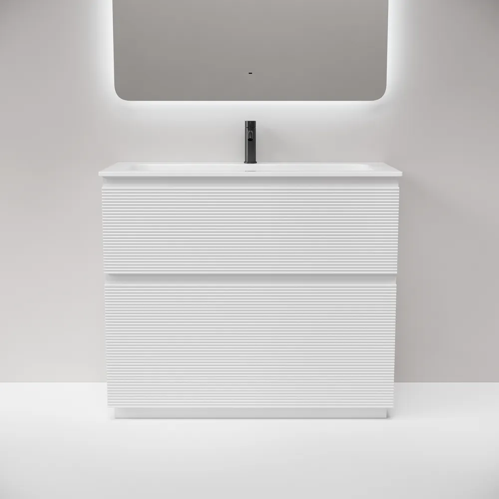 Тумба напольная с рельефным фасадом SANCOS Folk Floor 995х445х850, c двумя ящиками оснащенными доводчиками скрытого монтажа с системой плавного закрывания, цвет Bianco, арт.FL100FW