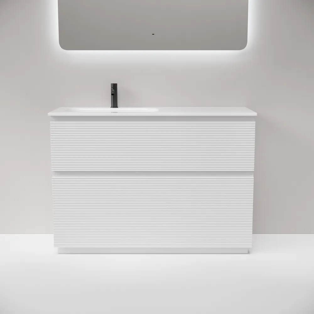 Тумба напольная с рельефным фасадом SANCOS Folk Floor левая 1190х445х850, c двумя ящиками оснащенными доводчиками скрытого монтажа с системой плавного закрывания, цвет Bianco, арт.FL120FLW