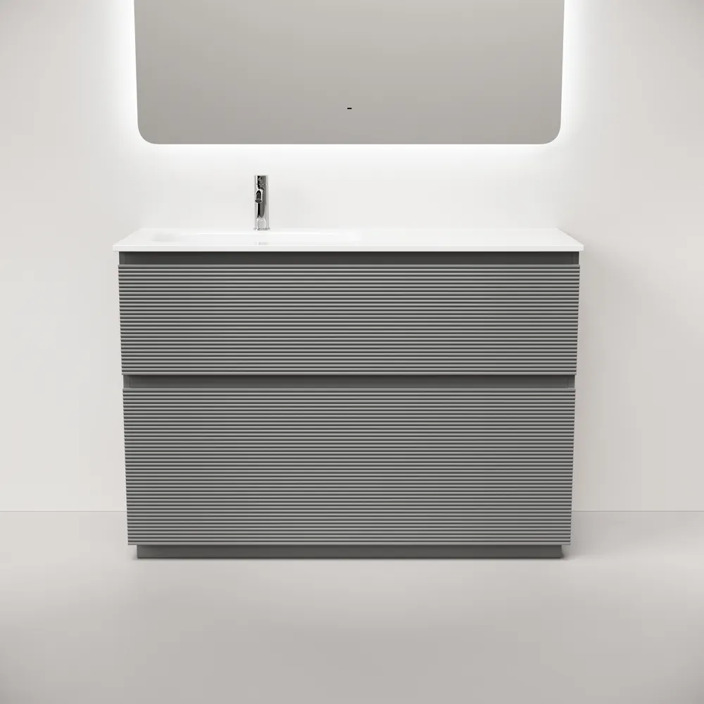 Тумба напольная с рельефным фасадом SANCOS Folk Floor левая 1190х445х850, c двумя ящиками оснащенными доводчиками скрытого монтажа с системой плавного закрывания, цвет Ergraut soft, арт.FL120FLES