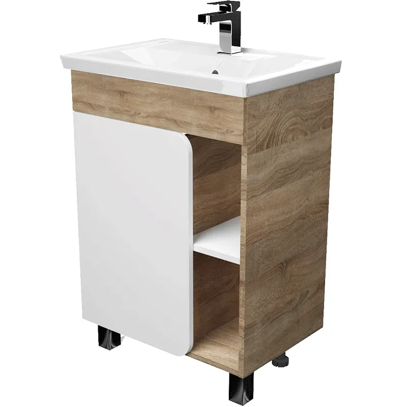 - Удобство монтажа: Напольный способ установки делает монтаж тумбы под раковину простым и быстрым.