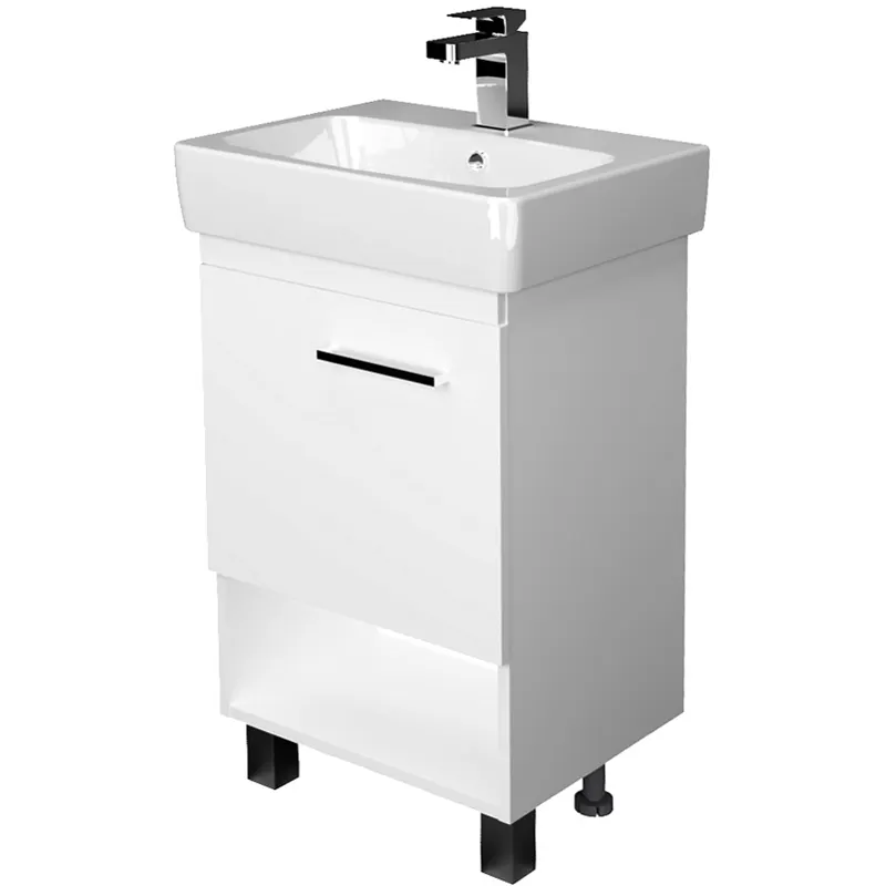 Тумба под раковину 1MarKa Tera 55 У76059 Белая глянцевая — это идеальное решение для современных ванных комнат. Данная тумба с раковиной сочетает в себе стиль и функциональность, обеспечивая удобство хранения благодаря системе с открытыми полками и одной дверце. Напольная конструкция обеспечивает устойчивость и простоту установки.