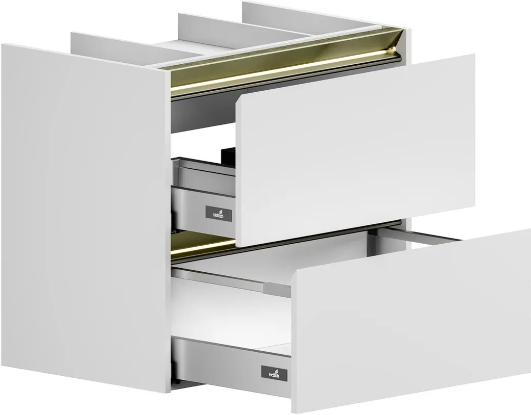 h3Тумба под раковину Allen Brau Activity 70 1.34011.WM белый матовый/олива браш/h3p style="text-align: justify;"Тумба под накладную раковину Allen Brau из коллекции «Activity» представляет собой элегантное и функциональное дополнение для вашей ванной комнаты. Эта модель тумбы, шириной 70 см, имеет привлекательный белый цвет, который придаст интерьеру современный шарм. Подвесная конструкция тумбы под раковину обеспечивает легкость и простоту монтажа, а материал корпуса ВЛДСП и материал фасада МДФ гарантируют прочность и долговечность. Матовое эмалевое покрытие корпуса и фасада добавляет изысканности и легкости в уходе. Корпус мебели на верхнем торце фасада имеет металлический декоративный профиль в цвете олива. Тумба комплектуется подсветкой в теплом тоне и специальным магнитным датчиком, который позволяет использовать подсветку в 2-х режимах: «декоративная подсветка» - всегда включена и «функциональная подсветка» - включается при открывании ящика. Детали фасада и декоративного профиля установленного на корпусе имеют фрезеровку и наклон 45 градусов, что делает открывание ящиков очень комфортным. Фурнитура тумбы для раковины оснащена доводчиком для плавного закрывания, а два выдвижных ящика обеспечат удобное хранение ваших ванных принадлежностей. Allen Brau Activity — это сочетание стиля, качества и удобства, которое сделает вашу ванную комнату еще более привлекательной и функциональной./p