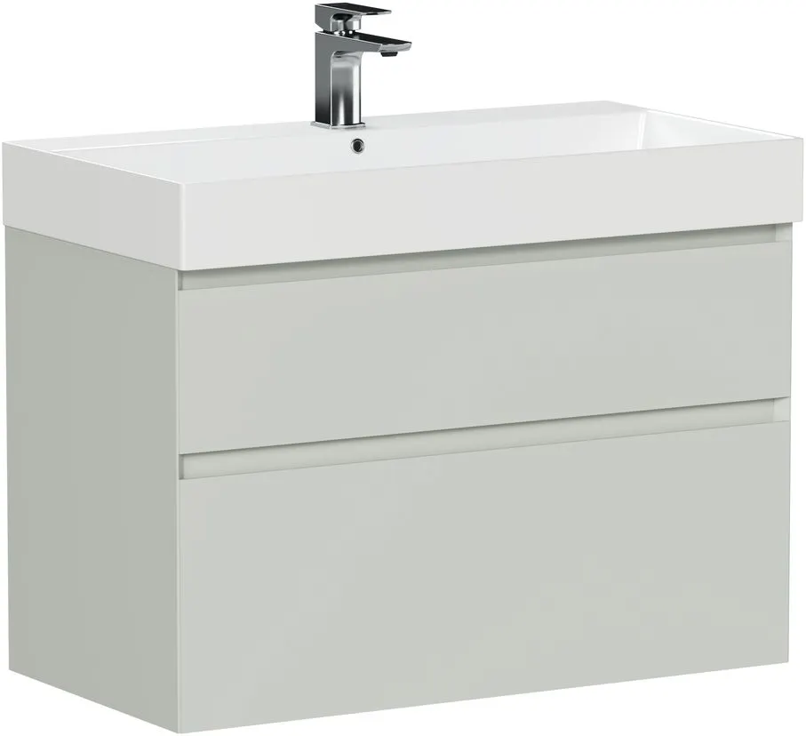 Тумба комплектуется керамической раковиной SLIM SYNERGY 85. Раковина имеет прямоугольную форму, глубокую чашу и тонкий высокий бортик. Доступна в белом или черном цвете.