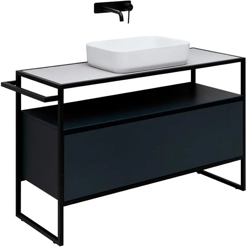 - Тумба под раковину: Металлический каркас, выдвижной ящик