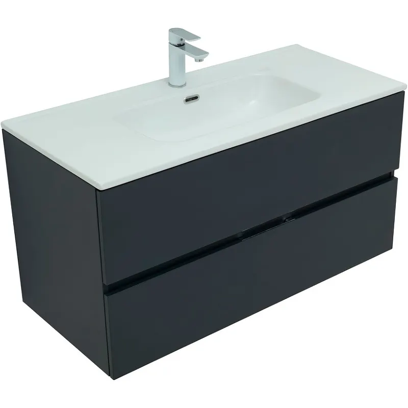 Тумба под раковину Aquanet Алвита New 100 277519 подвесная Антрацит — идеальное решение для любой современной ванной комнаты. Изготовленная из влагостойкого ЛДСП, данная модель обеспечивает долговечность и устойчивость к влаге. Подвесная установка позволяет сэкономить пространство, создавая эффект лёгкости и простора.