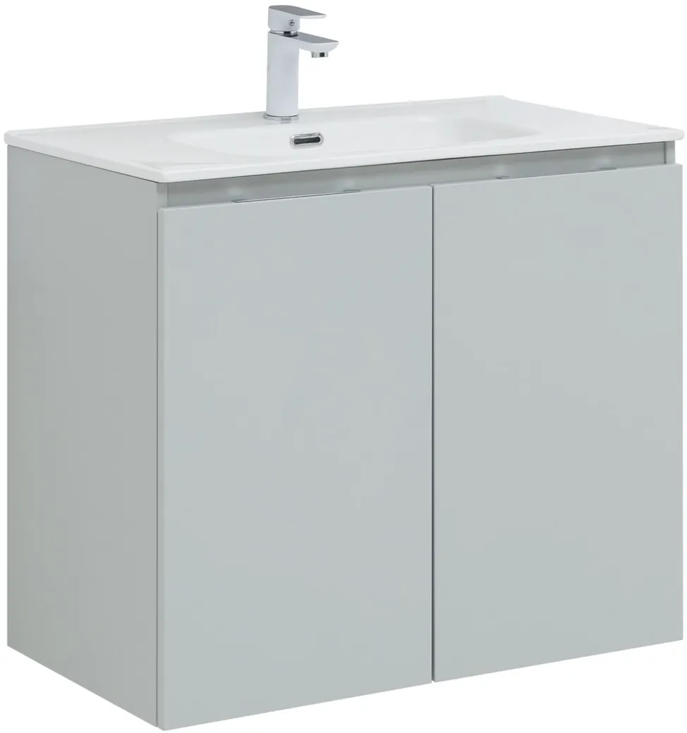 Тумба под раковину Aquanet «Алвита» New 80 в сером цвете. Две дверцы со скрытыми горизонтальными ручками закрывают вместительный отсек, состоящий из одной полки. Пространство используют для компактного хранения средств гигиены, бытовой химии или косметики. Корпус и фасады выполнены из влагостойкого материала ЛДСП. Модель подвесного типа обеспечивает простоту уборки пола и дополнит ванную комнату в стилях модерн, минимализм, сканди. Размеры — 800х457х684 мм.