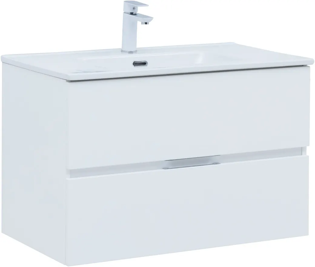 Модель хорошо впишется в интерьеры ванных комнат или санузлов квартир, домов или гостиничных номеров. В комплекте поставляется полувстраиваемая раковина. На ней предусмотрено отверстие для монтажа смесителя. Закругленные кромки понижают риск получения травмы при случайном контакте. Мебель подвесного типа, крепится к стене с помощью дюбелей.