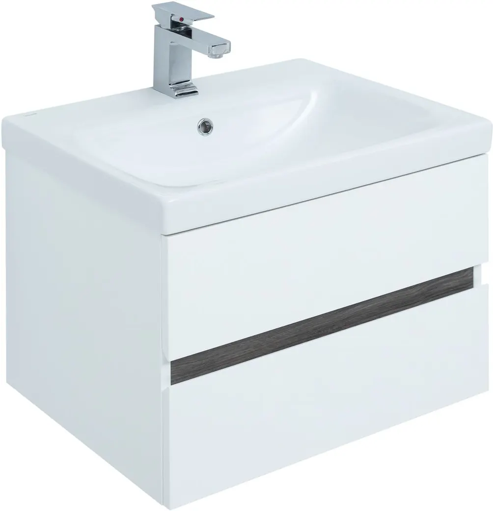 Тумба под раковину Aquanet Беркли 60 белый/дуб рошелье имеет изюминку - контрастную декоративную полосу между ящиками в цвете «дуб рошелье». Корпус и фасады тумбы выполнены из влагостойкого ЛДСП и покрыты глянцевой белой эмалью. В конструкции тумбы использованы интегрированные ручки без острых краев и внутренних углов.