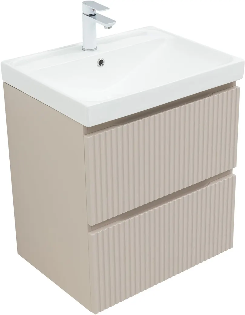 Тумба под раковину Aquanet Джейн (Flat) 60 бежевый — практичное и стильное решение для ванной комнаты. Корпус и фасады изготовлены из МДФ, покрытого суперматовой пленкой ПВХ повышенной прочности с эффектом «Soft touch». Покрытие не только приятное на ощупь, но и надежно защищает мебель от влаги. Полимерная структура пленки не пропускает воду, поэтому тумба не деформируется со временем и сохраняет первоначальный вид.
