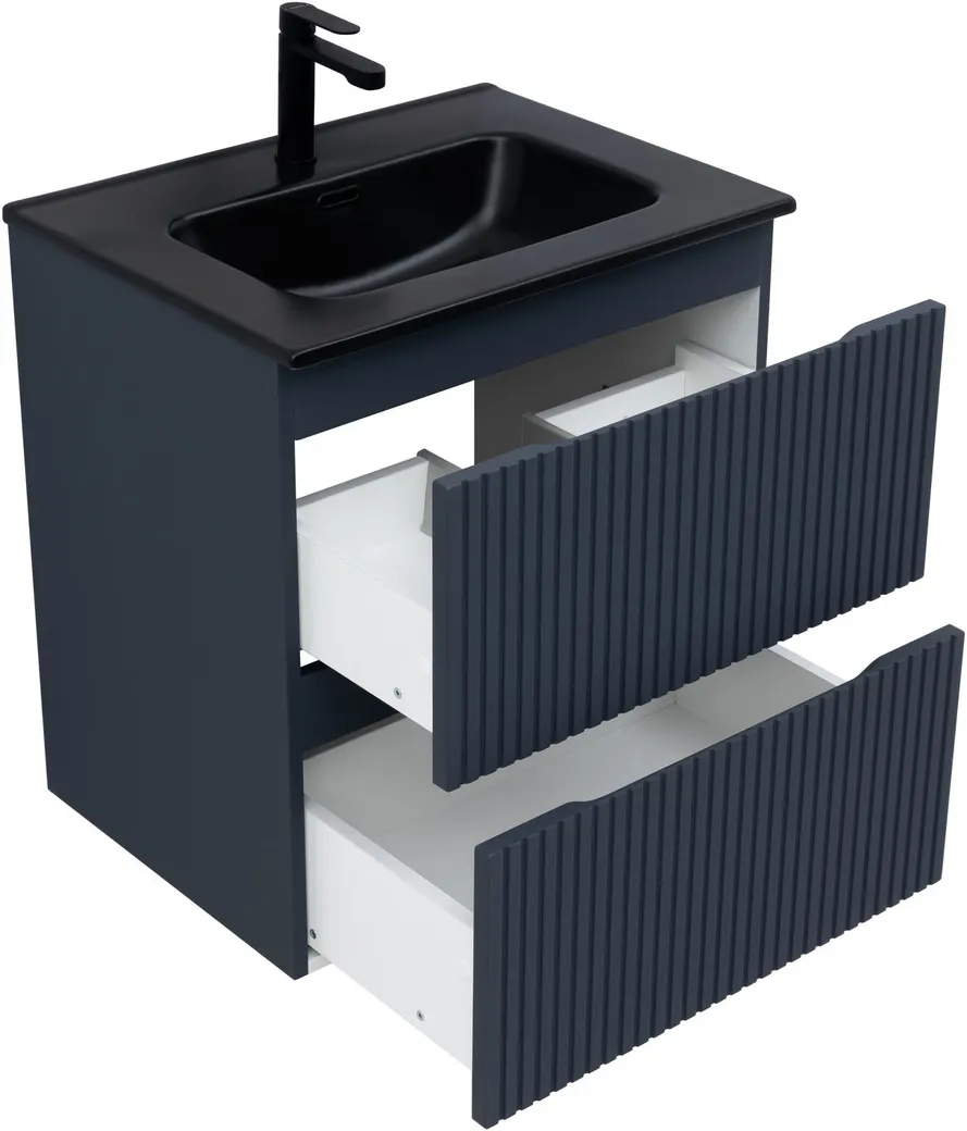 Поверхность бархатистая, устойчивая к царапинам. Внутренние детали выполнены из влагостойкой ЛДСП белого цвета. Дно ящиков прочное, изготовлено из ЛДСП толщиной 16 мм, что обеспечивает долговечность.