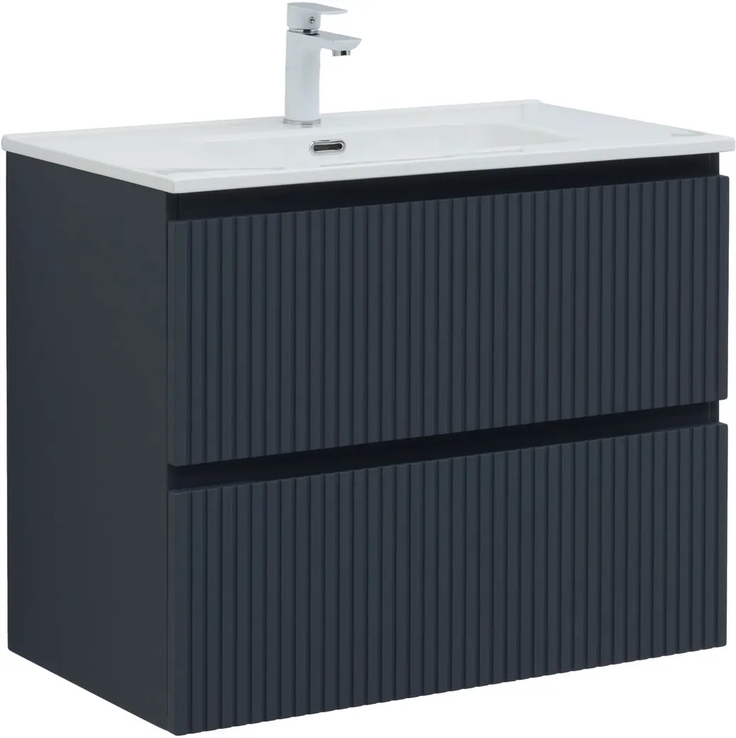 Тумба под раковину Aquanet Джейн (Flat) 80 маренго — практичное и стильное решение для ванной комнаты. Корпус и фасады изготовлены из МДФ, покрытого суперматовой пленкой ПВХ повышенной прочности с эффектом «Soft touch». Покрытие не только приятное на ощупь, но и надежно защищает мебель от влаги. Полимерная структура пленки не пропускает воду, поэтому тумба не деформируется со временем и сохраняет первоначальный вид.