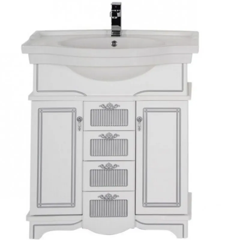 Тумба под раковину Aquanet Луис Shenxin 80 186179 Белый глянец/патина серебро