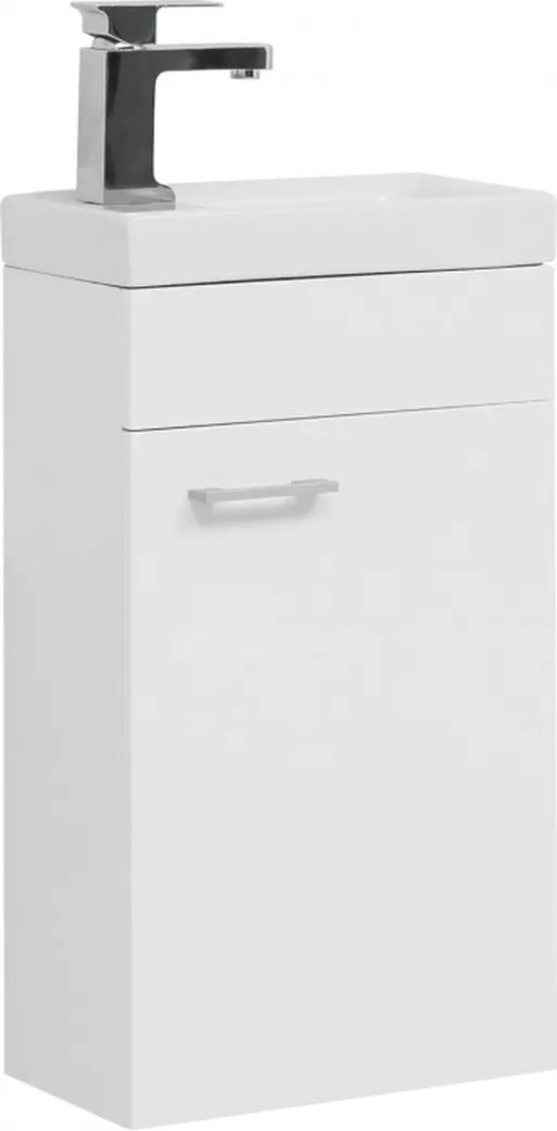 Тумба под раковину Aquanet «Нота» 40 R (Moduo) белого цвета — отличный вариант для небольших по площади ванных комнат или санузлов. Модель габаритами 391х217х650 мм не займет много места, позволит организовать пространство, разместив на полке средства для стирки или гигиенические принадлежности. Отсек закрывается одной дверцей, на которой располагается ручка для открывания.