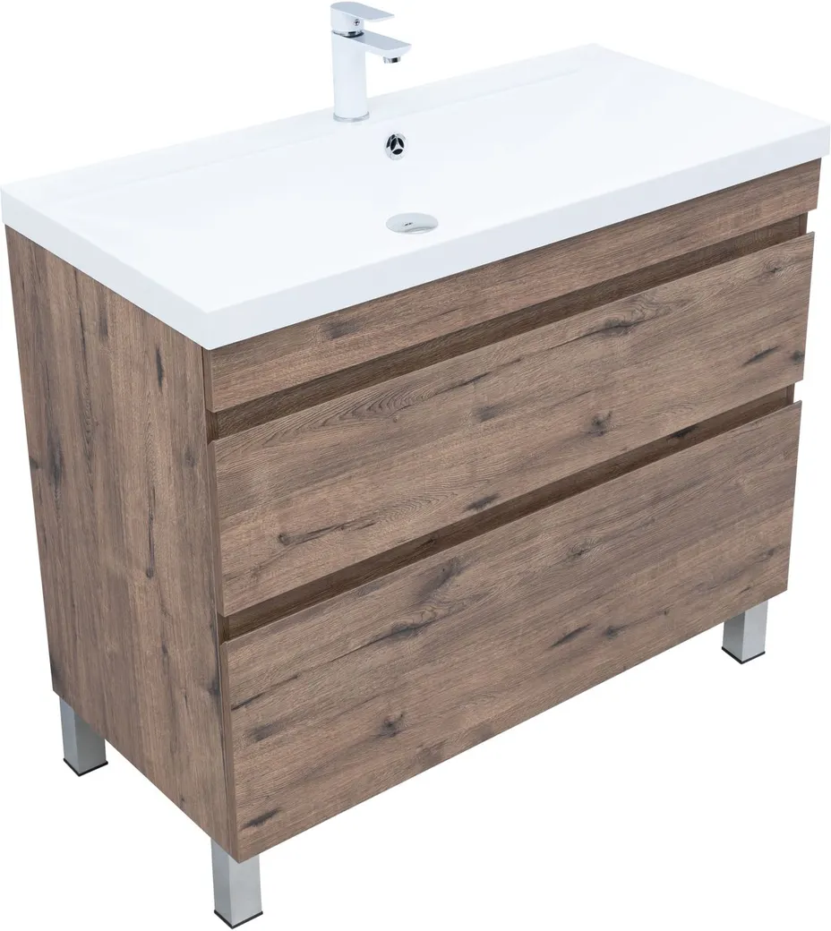 Тумба под раковину Aquanet Нота New 100 напольная, дуб веллингтон табак арт-00344148