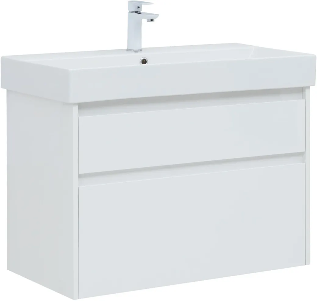 Тумба под раковину Aquanet Nova Lite 85 белый глянец, 2 ящика арт-00249936